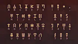 - Many illageralt characters resemble those of the Standard Galactic Alphabet, which is used in Minecraft itself.