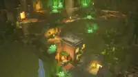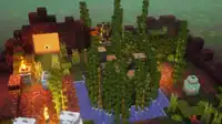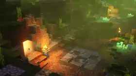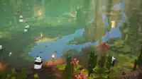 Panda Plateau is an expansive bamboo jungle located south of Overgrown Temple. It is composed of uneven terrain with cliffs, and is populated with countless bamboo stalks and a once-thriving community of pandas. It features jungle foliage, stone ruins, small water ponds, waterfalls, torches, a dark cave, and statues of pandas, parrots, and villagers. Near the start of the mission, a bamboo gate can be found with a gold statue of the Arch-Illager next to it that prevents access further into the mission. To the south-west, a stone ruin can be found up a steep hill suspended high above the ground. It contains a switch that, if activated, lowers the bamboo gate below and starts an ambush. Shortly after the bamboo gate, an open area with a water pool in the center can be found that contains five captured pandas. Rescuing all five pandas lowers the bamboo gate to the north-east, granting access to a pathway that leads to the entrance door of Panda Plateau Cave. Panda Plateau Cave is an expansive cave with glowing mushrooms, thin dirt pathways, and an additional six captured pandas. The six captured pandas must be rescued to lower a bamboo gate at the end of the cave, granting access to the exit door. After exiting Panda Plateau Cave, a supplies chest can be opened and a village built atop the trees can be found to the south-west. After making it past the village, a long pathway populated with celebrating pandas can be found that leads to a small wooden boat. This boat can be used to escape the plateau, ending the mission.