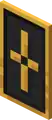 The golden pattern on royal guard shields is depicted in the shape of a cross, which also happens to be depicted on illager-related banners, blocks, and the walls of the Woodland Mansion and Highblock Keep.[1]