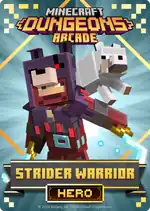 The player equips Strider Warrior when the following cards are used in Minecraft Dungeons Arcade.