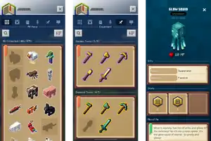 The journal was a section within Minecraft Earth that listed every mob, item, and block that the player had obtained. Once they collected one of the things mentioned earlier, it was recorded within the journal. There were 585 entries that were filled in the journal. The journal was split into Mobs, Construction, Nature, Equipment, and Items.