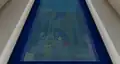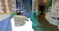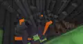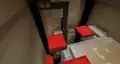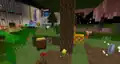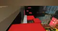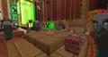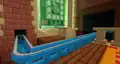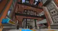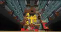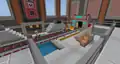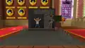 To the sides of the room are color coded transits to each department, and between the transits are massive pipes that transport various mobs up and down. Occasionally, a Steve appears clinging onto a pipe’s inner wall, trying to escape. They can be “saved” by clicking a button in front of the pipes, which releases massive amounts of water to flush them; soon after clicking the button, Steve can be seen crying. This action should unlock the “Flush” sticker; however, due to a bug, a player might already have the sticker unlocked, even if they have just joined the event for the first time.