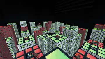 The player spawns on a black rounded platform and gets 60 seconds to get as many points as they can by using the Dev Hammer to squash bugs that spawn on 3×3 pillars of various heights. A pillar is colored red and black when a bug is present and is green and white otherwise, but the transition is not instanteous. Three kinds of bugs exist: a red one (the most common kind) yields 10 points, a yellow one yields 50 points, and a green one yields 10 points and adds 10 seconds to the timer. If not squashed in time after spawning, a bug burrows back into the pillar and despawns. If the player falls off a pillar, they lose five seconds and respawn at the black platform.