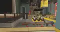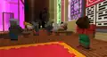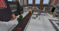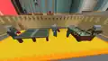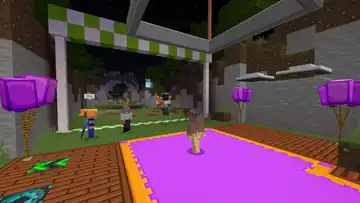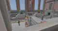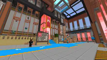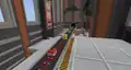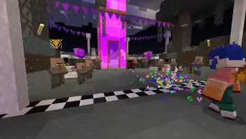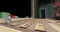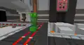 Beside the transit to the QA Department is a queue of various mobs, as well as Sunny and Kai, where several quick gags will play. An iron golem will knock a zombie in lime away, sending it to the back, where it will scare a villager to regain its place. This in turn causes the villager to cut in line, in front of Sunny, to their irritation. A creeper will explode, sending the villager back, before an enderman picks the villager up, scaring them enough to send them back to the end of the line, renewing the cycle. The line itself leads up to a Constructor NPC, who when interacted with can initiate the rollercoaster minigame, which the player exits on the opposite side of the wall.