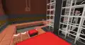 The QA Department is dedicated to bug fixing. When joining this lobby, players fall from the yellow tube facing the exit, stationed above a flight of stairs. Periodically, a zombie will chase a villager around, having fallen out the tubes, before returning. Beside the exit area are two groups of vindicators. To the left is a small library, with vindicators reading books at small tables. To the right is what appears to be a break area, with a vindicator seemingly waiting with a cup of coffee, two playing tabletop tennis, two playing Foosball, and a fifth clapping in the direction of the ping pong game.