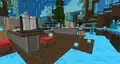 Upon entering the Idea Vault, the player will fall out of a giant purple tube, and see a build of a light bulb floating in mid-air. The lobby is by far the smallest of those featured in the server, consisting of a large acacia platform on a cloud. To the left and right of the initial drop are the leaderboard and daily challenges, alongside common decorations such as balloons, boxes, and carpeting. A few blocks away from spawn is Jens, who explains the purpose of the vault.