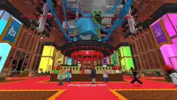The event consisted of 5 lobbies (the Main Lobby, the QA Department, the Mob Factory, the Biome Labs and the Idea Vault), 4 mini-games (Rocket Arena, Mob Smash, Biome Drop, Cloud Race), and 5 daily challenges to earn character creator items and the Mojang Office Cape. Players could earn coins by collecting them around the map or playing games which can then be spent in the shop.