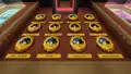 Behind the spawn is a collection of cardboard boxes, with a confetti cannon at the top of the closest and a coin on the tallest. Beyond those are a series of conveyor belts, alternating between creepers, skeletons, TNT, and iron golems, in front of three more stasis chambers. Agnes stands in front of the area, marking the entrance to the Assembly Attack section, with observatories into each area of the minigames nearby. Near one of the windows is a coin.