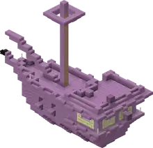 The End ship is made of End stone bricks and purpur blocks, just like the city's main towers. Their design resembles that of European square rig sailing ships, commonly seen during the golden age of exploration. Three shulkers spawn on the ship; one on the main deck, one behind the stern of the ship, and one in the treasure room.
