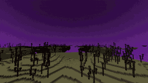 The End sky is rendered in any dimension which uses the dimension effect associated with the End. Much like the panorama, six texture planes are rendered in a cube surrounding the camera. The texture is repeated 16 times to an edge, for a total of 256 instances of the texture per face (1536 for the entire cube).