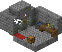 - Sometimes spawns with an underground structure that houses a villager, a zombie villager, a brewing stand with a splash potion of Weakness, and a chest with a golden apple, serving as a tutorial for the villager curing process.