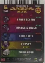 The player equips Frosty when the following cards are used in Minecraft Dungeons Arcade.