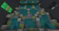 In this final iteration, players are given three tridents enchanted with loyalty III and unbreaking III, and have to fight three guardians in a miniature ocean monument. The first is present from the outset, and likely be the first guardian killed or attacked. The second is inside the structure itself, in a room lined with quartz pillars and dark prismarine. The third is in a narrow passageway, identifiable through two more pillars and an iron bar window.