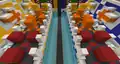 In this small factory, there is an abstract sculpture just waiting to be copied! Use the pressure plates behind you to select your blocks and match the sculpture exactly. Use the pickaxe to remove unwanted blocks.