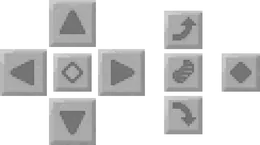These buttons are present only in mobile and desktop versions with a touchscreen, and they are used to control the player. Players can sneak, fly and jump using the mobile controller.