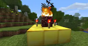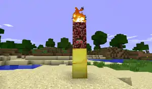 A popular idea in the community is that Herobrine can be "summoned" through the use of a special arrangement of blocks; such a structure is usually referred to as a "Herobrine altar," "Herobrine shrine," "Herobrine totem," or "Herobrine spawner." Typically, this is a 3×3 horizontal square of gold blocks, with a block of netherrack placed on top and four redstone torches placed upright on each side.[24] The block beneath the netherrack varies between versions, with common choices being mossy cobblestone,[29] soul sand,[55] more netherrack[56] or more gold.[57] Another common design is a 1 block wide, 4 block tall pillar with 2 gold blocks on the bottom and 2 netherrack blocks on the top.[58] Some variations also include other blocks such as redstone dust[59] or lava.[60] Igniting the netherrack is supposed to "activate" the structure, which then supposedly summons Herobrine into the world.[30]