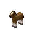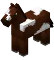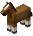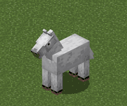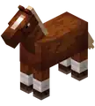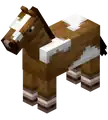 A horse is a passive mob that can be ridden when tamed and saddled, and can wear horse armor. Different horses have different run speeds, jump heights and health points, and these attributes can be inherited and improved through breeding.