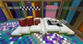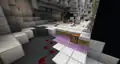 The Stone Room is reachable by default, with a cobblestone floor and stone brick walls lined with redstone torches. The Red Room is made primarily of netherrack, with scarce nether bricks, red nether bricks, nether quartz ore and glowstone distributed in diagonal shapes. The Green Room is made of prismarine, with sea lanterns positioned in the walls in a wave pattern, and prismarine bricks and dark prismarine placed arbitrarily. The Black Room is made almost exclusively of black concrete, redstone lamps, and endstone. If the player wants to return to the White Room, where they came from, they can press a similar setup.