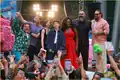 Jared Hess (middle) with the cast of A Minecraft Movie -