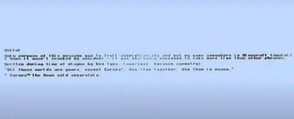 - ↑ "Well, check "The Library of Babel" if you have time, it's interesting story. Now, try to find very sensible villager that tries to stay healthy." – @0x00716F62 on X (formerly Twitter), April 1, 2020