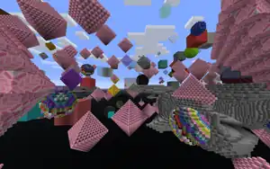 20w14∞, also referred to as 20w14infinite in the launcher, 20w14~ in-game, and the Infinity Snapshot[1], is an April Fools' joke snapshot, supposedly the first and only snapshot for the "Ultimate Content" update, released on April 1, 2020,[2] which adds new procedurally generated dimensions that randomize existing elements of the game and several ways to access them. 20w14∞ is a fork of 20w13b, which was the most recent snapshot at the time.