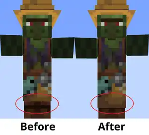 - MC-53312 – Illager/(zombie) villager/witch robes don't render the last two rows of pixels.