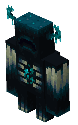 Warden remains in a laying position at the center of the stage. It does not react until the player blows a horn following a villager wondering event dialogue, after a certain amount of time.