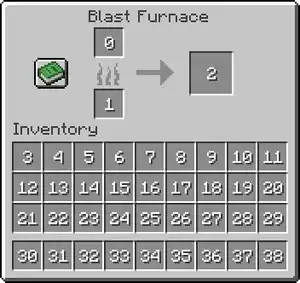 Same layout as a furnace; however, the recipe book displays blast furnace recipes instead of regular furnace recipes.