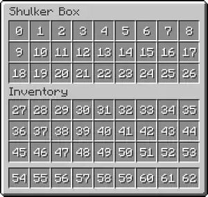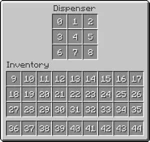 General-purpose 3-row inventory. Used by Chest, Minecart with Chest, Ender Chest, and Barrel. | |