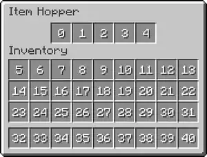 The hopper GUI appears when interacting with a hopper or minecart with hopper.