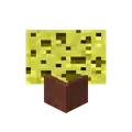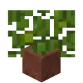 Some blocks appear tinted by biome if their normal variants usually would be. Because leaves were tinted as per their numerical data values, setting the number prior to destroy to 1 for specifically potted leaves causes them to be tinted with the spruce color, and setting it to 2 gives the birch color. 0 or 3 results in them being tinted per biome like oak and jungle leaves are.