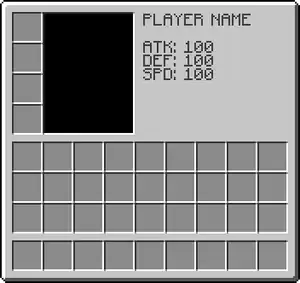 In early Indev versions, the player could open the inventory screen and view their name and three stats: "ATK", "DEF", and “SPD”, probably standing for attack, defense, and speed. These existed only briefly; when asked, Notch stated he could not remember exactly why they were implemented and subsequently removed, and he assumed they were placeholders for "vague plans".[1]
