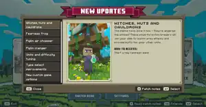 The new updates screen is a menu screen that displays information about the most recent updates. It can be accessed from the main menu through the "Read patch notes" button.