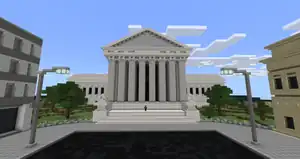 Right beside the structure will be a second Gandhi, beside the area's resident activity. He will explain his belief in pacifism, loving all (including enemies), and encourages building a monument to represent his teachings. Unlike the others challenges, the terrain used is made up of allow blocks with a nearby structure block, enabling the player to export the build if desired. Down another path of glowstone arrows will lead back to John Lewis, pointing towards London.