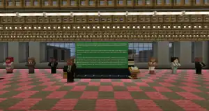 The map proper begins in a lobby filled with many NPCs, the closest being congressman John Lewis, standing in front of the same green speech. Interacting with him will explain who he is, and point towards an activity guide which can be read through either a lectern or a chest of books, explaining more about the map's subject. Furthermore, he can transport the player into the main story of the map, with additional NPCs present to warp to a desired section.