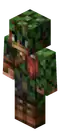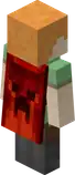A brown skinned figure with brown bangs, a terracotta-red apron, and an undershirt designed like the towers of the desert pyramid. |