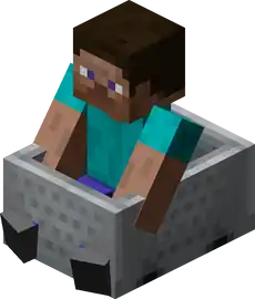 A minecart is a ridable vehicle entity that runs on rails and can be used to transport both players and mobs.