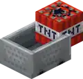 A minecart with TNT is a minecart with TNT inside. Unlike normal TNT, it can detonate instantly, and its blast radius and damage is increased by its speed at detonation.