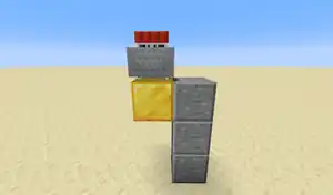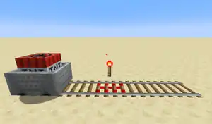 Destroying the block of gold causes the minecart with TNT to fall down and instantly explode.
