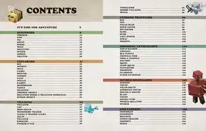Each page provides information and commentary on at least one mob and features relating to it. The book covers all mobs added until the Trails & Tales update across seven sections. Each section has a different character original to the book providing commentary on the mobs.