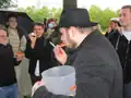 Over 50 people attended the gathering, including one fan in a full-body creeper costume,[7] which caught Notch's attention.[8] Notch discussed his future plans for Minecraft[9][10] and addressed the recent popularity of Herobrine.[11] Several attendees livestreamed the event or uploaded recorded footage to YouTube.