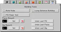 | Fill/Clear tool | When enabled, the player can place two blocks in opposite corners to completely fill the defined area with that block and hold nothing in their hands and right-click the corners to clear an area. | |