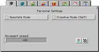 | Creative Mode (Self) | When enabled, double-tap space to fly, unlimited blocks in inventory, destroy blocks instantly. | |