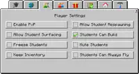 | Freeze Students | When enabled, students cannot move, destroy blocks or place blocks. | |