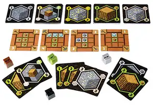 - Wild: A "Wild" card may be used as any one type of resource (e.g. if a player has three diamonds, but not enough wood to "craft" a diamond pickaxe, the player may use a wild card to substitute for the missing wood).