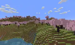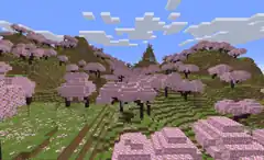 - Shortened cherry trees, growing on grass blocks. Pink petals appear on top of the grass, but the petals can only be seen if the player scrolls the screen up enough to see the top faces of the grass blocks.