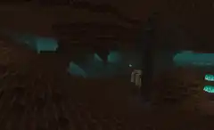 - The wall also has various holes. Some holes contain dripstone blocks and pointed dripstone. The dripstone holes resemble a dripstone cave, but the shallow cave does not generate with any fully-detailed cave biomes.