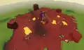 The destruction echoes in the Nether, startling the Seer. A messenger piglin brings the news to the Great Hog, who orders the piglin be beat to death. Angered, they send troops of the Horde of the Bastion to attack the homesteads of the mobs that helped the hero in the fight. After the hero saves them, they cheer and show eternal gratitude by helping them.