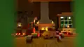 After a cat awkwardly violates a creeper's personal space, Alex dances around a Nether Portal, tossing around gold nuggets as a piglin emerges, its interest piqued. An iron golem invites the camera into a hallway protected by an iron door, where a spyglass is placed on the ground. Using it, it is revealed that, on the opposite end of the hallway, is a pillager also using a spyglass, who runs away in fear upon being spotted. As the camera recedes down another path, a statue resembling Steve is shown, and looks away. The announcer promises "weird stuff," seguing into a room of skeletons dancing, who get disturbed by the intrusion and almost shoot the camera. The announcer and camera then move on to a picture of Jens looking at a hanging sign in a boat with a chest, which the announcer clarifies we are not meant to see and blurs.