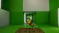 A creeper appearing inside the popup book, while Efe approaches. -